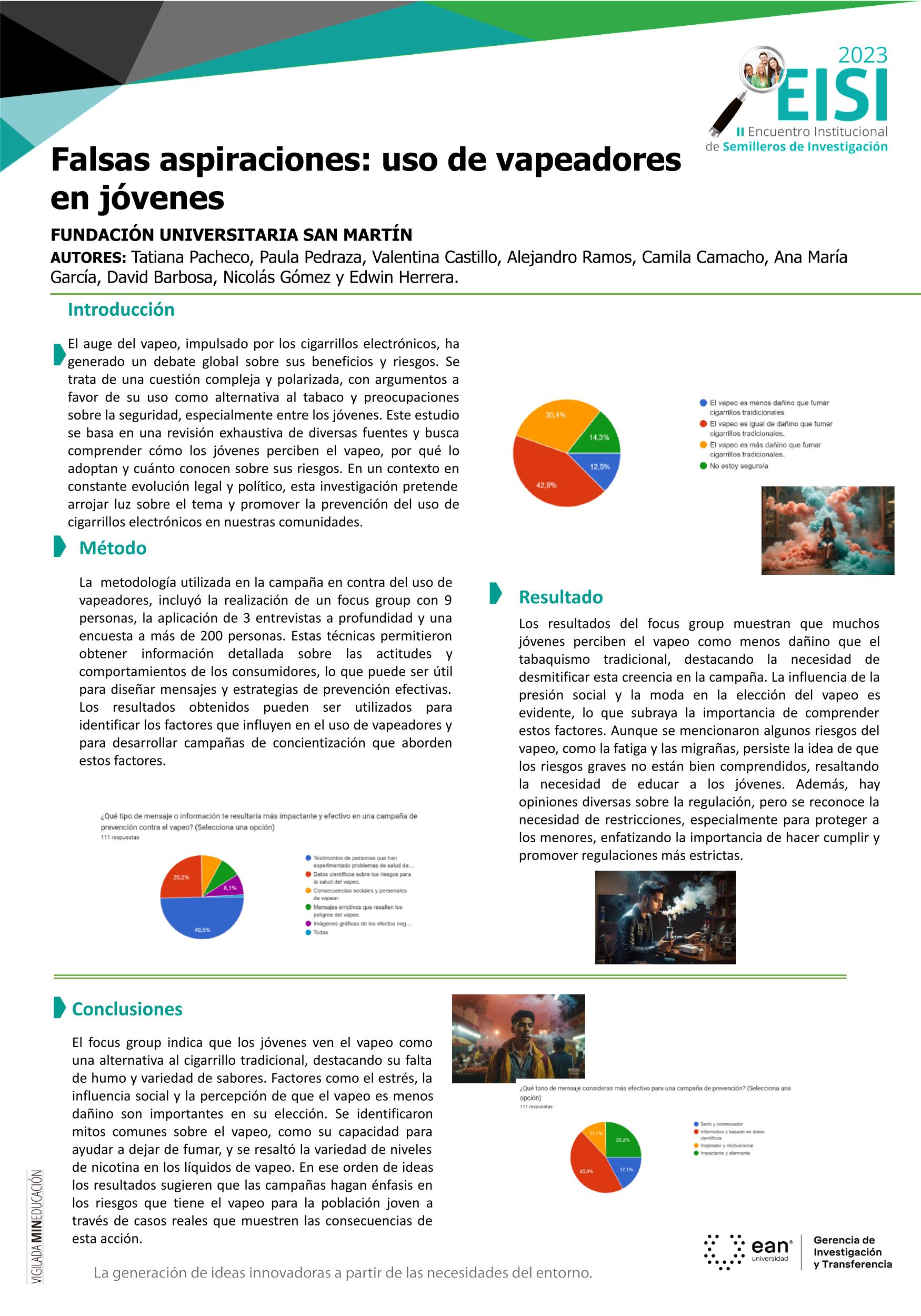 La Universidad San Martín para promover hábitos de vida saludables y decisiones informadas entre los jóvenes. A través de investigación social y comunicación educativa, esta iniciativa busca aclarar mitos sobre el vapeo, comprender sus riesgos y fortalecer la capacidad de los estudiantes para cuidar su bienesta