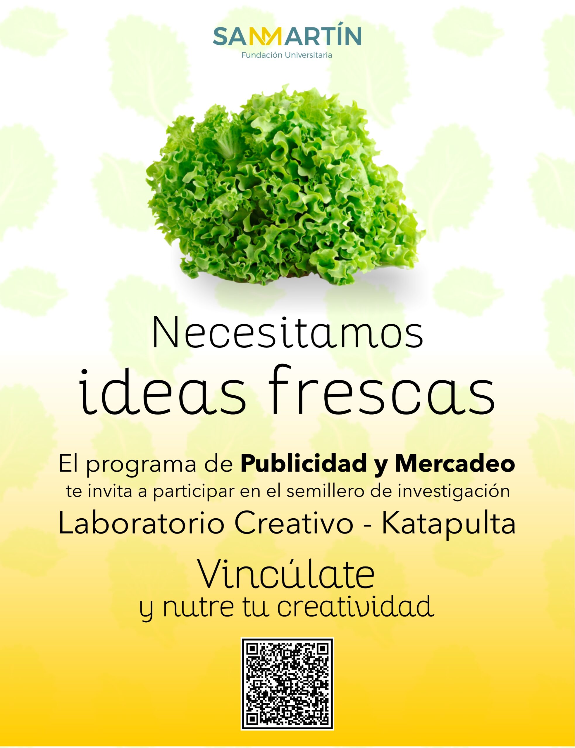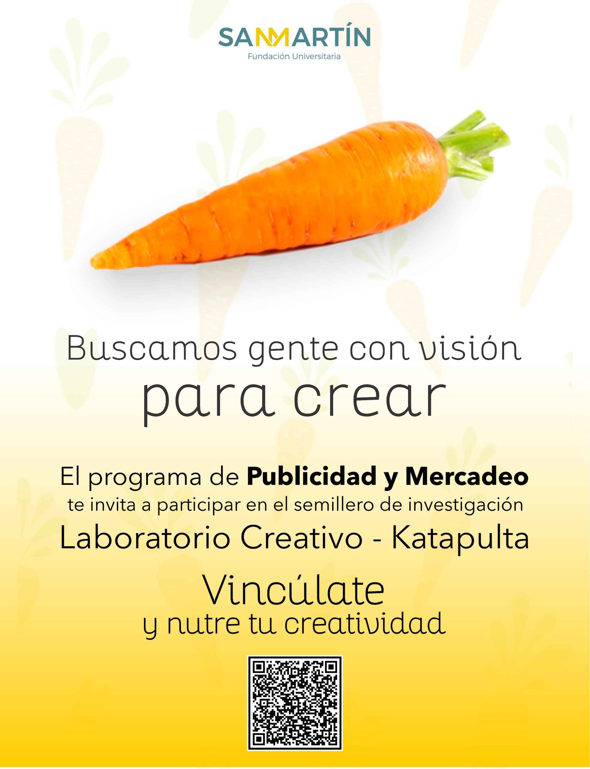 Iniciativa del programa de Publicidad y Mercadeo de la Universidad San Martín que invita a los estudiantes a explorar su creatividad y fortalecer sus habilidades innovadoras. Este semillero fomenta el pensamiento estratégico, el diseño de ideas y la experimentación visual.