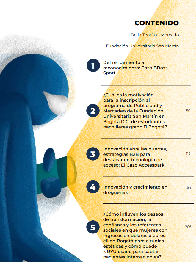 El libro reúne diversos casos empresariales trabajados con empresas reales, a partir de problemáticas concretas del sector productivo. Los estudiantes desarrollaron investigaciones de mercados aplicando entrevistas en profundidad, encuestas y otras metodologías propias del campo, lo que les permitió comprender con precisión a los públicos, identificar necesidades y analizar comportamientos relevantes para la toma de decisiones.
